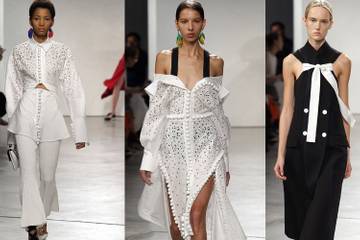 Après s'être inspirés de Cuba - dont la famille de M. Hernandez est originaire - pour leur collection de mi-saison en juin, les créateurs réfutent toutefois l'idée d'une influence directe de la garde-robe espagnole, tout en reconnaissant la persistance d'une "'vibe' latine". Les tons dans l'ensemble jouent autour du duo noir et blanc et du rouge à l'exception d'une robe filet vert bouteille en maille dévoilant tout ou presque du torse féminin par jeu de transparence.