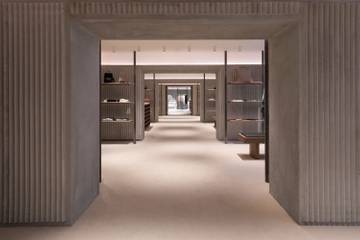 En plus de la boutique, l’espace apporte un concept nouveau. Les collections se mélangent aux œuvres contemporaines sur trois niveaux : la femme et l’enfant au premier étage, sneakers, chaussures et accessoires au rez-de-chaussée, l’homme et la galerie d’art au sous-sol.