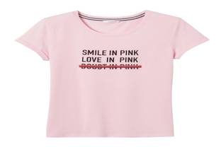 Pour la deuxième année consécutive, Camaïeu renouvelle son engagement pour la lutte contre le cancer en soutenant la campagne Octobre Rose. Pour l’occasion, la marque française a imaginé deux t-shirts exclusifs en coton cent pour cent bio. Sur l'un des deux modèles, on retrouve le message : « smile in pink, love in pink » (souris en rose, aimes...
